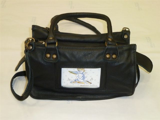Faenza è la città conosciuta in tutto il mondo per la sua ceramica, ed è proprio dalla volontà di proporre una borsa in pelle realizzata in Italia e impreziosita da una formella in ceramica, decorata a mano una ad una, che è nata la borsa “Modello Compendiario”.