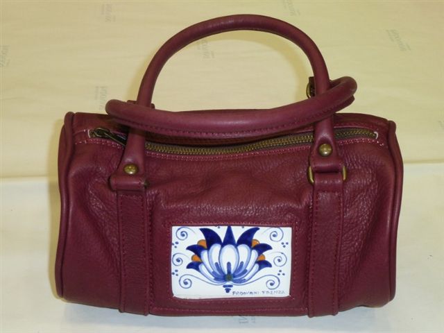 Faenza è la città conosciuta in tutto il mondo per la sua ceramica, ed è proprio dalla volontà di proporre una borsa in pelle realizzata in Italia e impreziosita da una formella in ceramica, decorata a mano una ad una, che è nata la borsa “Modello Palmetta Persiana”.