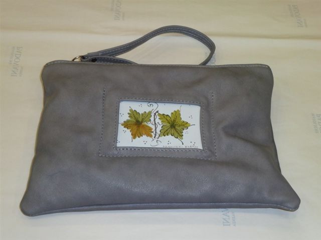 Faenza è la città conosciuta in tutto il mondo per la sua ceramica, ed è proprio dalla volontà di proporre una borsa in pelle realizzata in Italia e impreziosita da una formella in ceramica, decorata a mano una ad una, che è nata la borsa “Modello Vite Verde”.