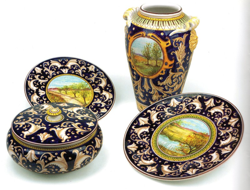 Pur essendo policrome, i toni dominanti sono quelli del giallo e del bruno su fondo bianchissimo (raffaellesche urbinate) e su blu (raffaellesche faentine).