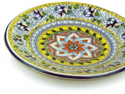 La denominazione ne indica l’origine orientale, una maiolica decorata con temi tratti soprattutto dai tessuti orientali e che utilizza in modo particolare un motivo composto da un fiore con petali somiglianti ad una pigna.