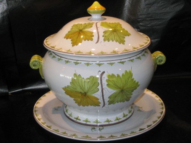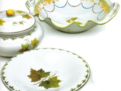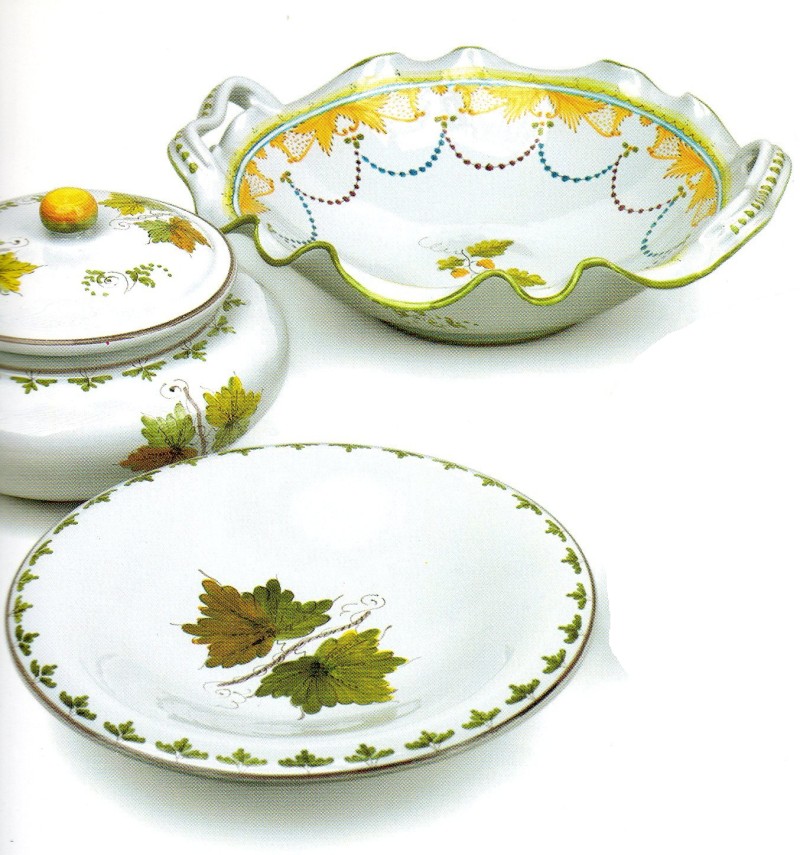 La foglia di vite è il motivo dominante presente nelle maioliche faentine della fine del XVIII Secolo, molte delle quali prodotte nella celebre Bottega Ferniani.